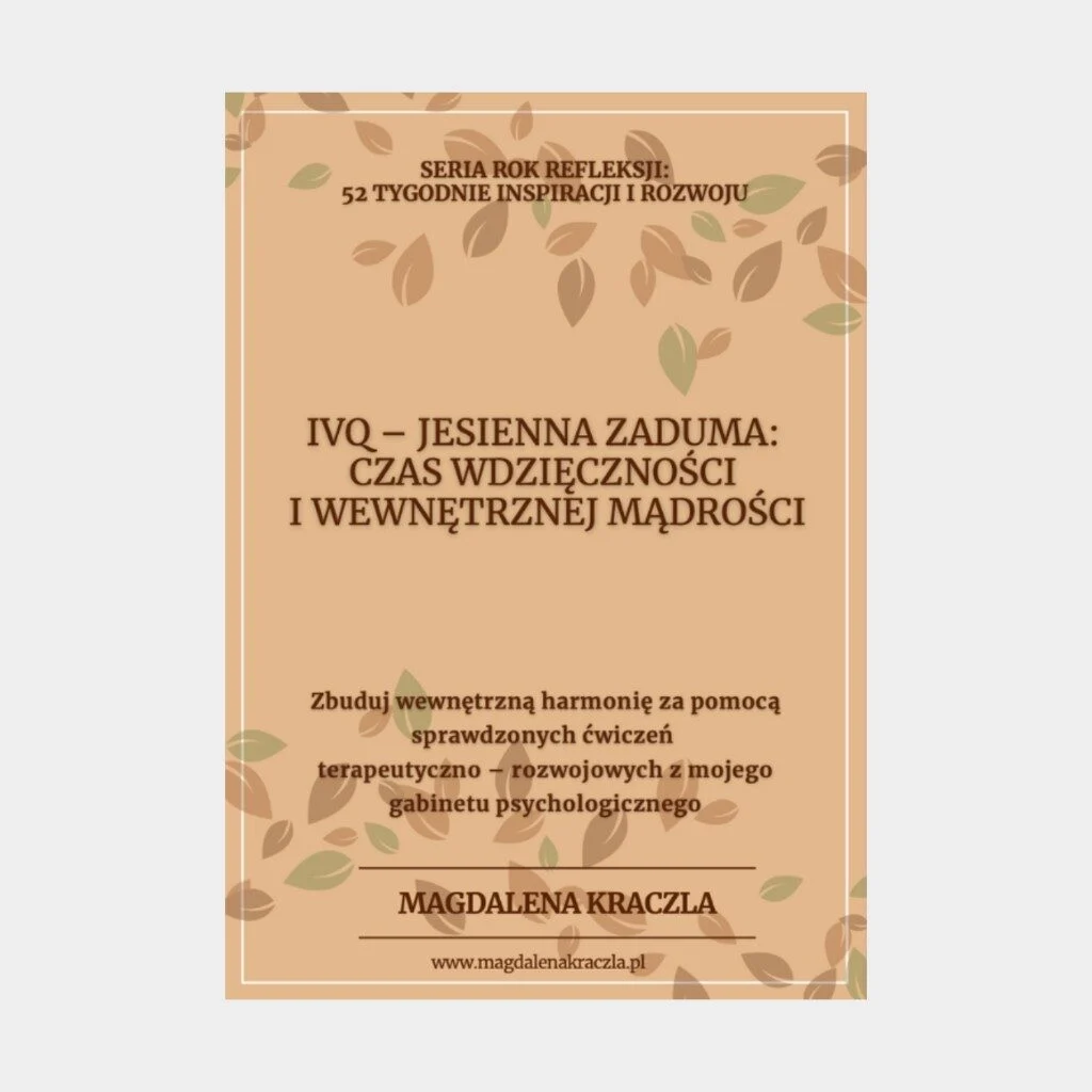 Odkryj, jak jesienna zaduma może stać się Twoim czasem wdzięczności, refleksji i wewnętrznej mądrości dzięki E-bookowi „IVQ – JESIENNA ZADUMA: CZAS WDZIĘCZNOŚCI I WEWNĘTRZNEJ MĄDROŚCI”.
